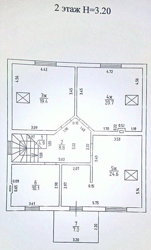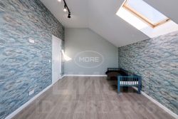 - 2 этаж: 3 спальни с полноценными окнами и дополнительным освещением за счет мансардных окон; гардеробная, ванная комната. Высота потолков 3.2 м, балкон 7м2.