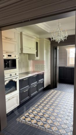 Пространство дома продумано для комфортного круглогодичного проживания. На первом этаже расположен просторный холл, кухня с техникой премиум-класса SMEG и Schaub Lorenz, включая встроенную кофемашину, духовой шкаф, посудомоечную машину и измельчитель отходов Bone Crusher. Гостиная с камином и панорамными окнами открывает прямой вид на море и имеет выход на просторную террасу, выполненную из сибирской лиственницы. В доме установлена система видеонаблюдения и современные системы безопасности.