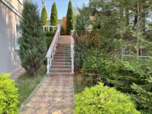 Дом расположен на земельной участке 19 соток в собственности. На придомовой территории обустроены зоны отдыха для барбекю, банный комплекс, высажены вечнозеленые деревья и кустарники, образующие полноценный парк.