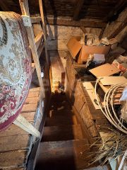 Планировка включает две смежные и одну изолированную комнаты, два санузла, бытовые помещения, просторный чердак, пригодный для переоборудования в жилое пространство, и подвал.