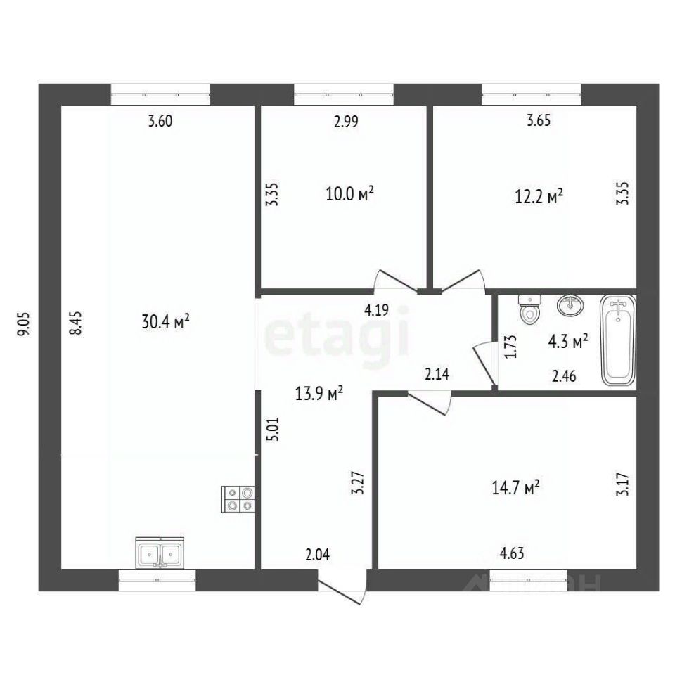В доме три комнаты: 10 ; 12,2; 14,7 м2