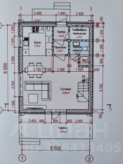 Гостиная 30 кв.м., кухня 7,45 кв.м. , ванная комната 3,21 кв.м., техническое помещение 2,18 кв.м., тамбур 1,68 кв.м., прихожая 1,76 кв.м.,