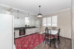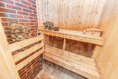 Площадь дома 173 кв. м. В котором просторная кухня, прекрасная гостиная с большими окнами и выходом на просторную террасу, где можно проводить вечерние посиделки с близкими и друзьями. В отдельном крыле обустроена баня и есть отдельный, не совмещенный с жилой зоной, проход в гараж.