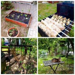 Плодовые деревья и кустарники: яблоня, груша, алыча, черноплодная рябина, большой малинник, войлочная вишня, смородина, крыжовник, виноград.