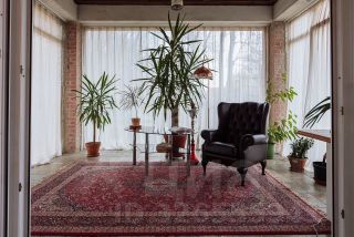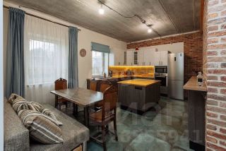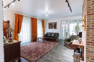 Кухня-гостиная с дизайнерской мебелью из натурального дуба, на полу итальянская плитка Саеsаr, Grаziа. Вся мебель и бытовая техника остаются.