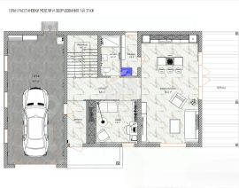 На 1 этаже по всей территории установлен тёплый пол, в с\у установлена тёплая стена, имеется мастер-спальня, оборудованная кухня, большой гараж площадью 38,53 кв.м., подготовлена площадка для террасы.