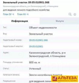 Kaдаcтpoвый номер: 39:05:010901:368