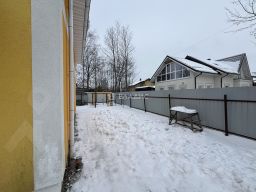 Забор вокруг участка. Заезд для 2-3 машин. Дружные соседи, живут постоянно. Вдоль забора высажены ёлки.