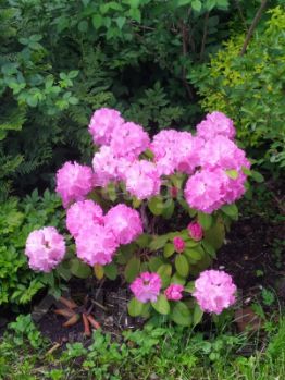 На заднем дворе высажен сад с фруктовыми деревьями - груши, яблоки, сливы, черешни, также имеется теплица для любителей садоводства. Есть даже домик в саду и пышный цветник с многолетними цветами.