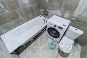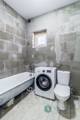 - первый этаж на полу выложена плитка, зашпаклеваны стены, натяжной потолок, в санузле уложена плитка на пол, стены зашпаклеваны, установлена ванна и унитаз.