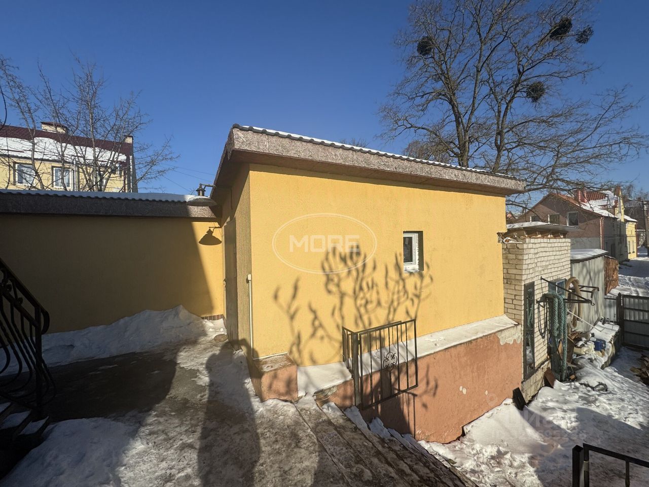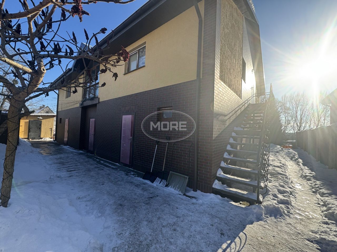 Дом разделен на две части, возможно проживание двух семей, или разделения на три квартиры. Вход в каждую секцию отдельный. На первом этаже расположена одна квартира, и просторная баня с выходом на задний двор и видом на Преголь.