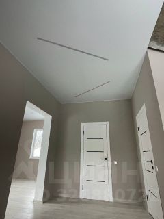 -Потолки натяжные, в коридоре со световыми линиями.