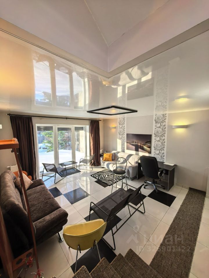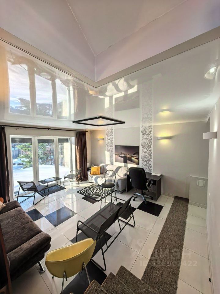 На 1 этаже расположена комната-гостиная площадью 21.3 м2 с выходом на собственную террасу с подсветкой, где можно организовать барбекю. Высота потолков на 1 этаже - 2.65 м.