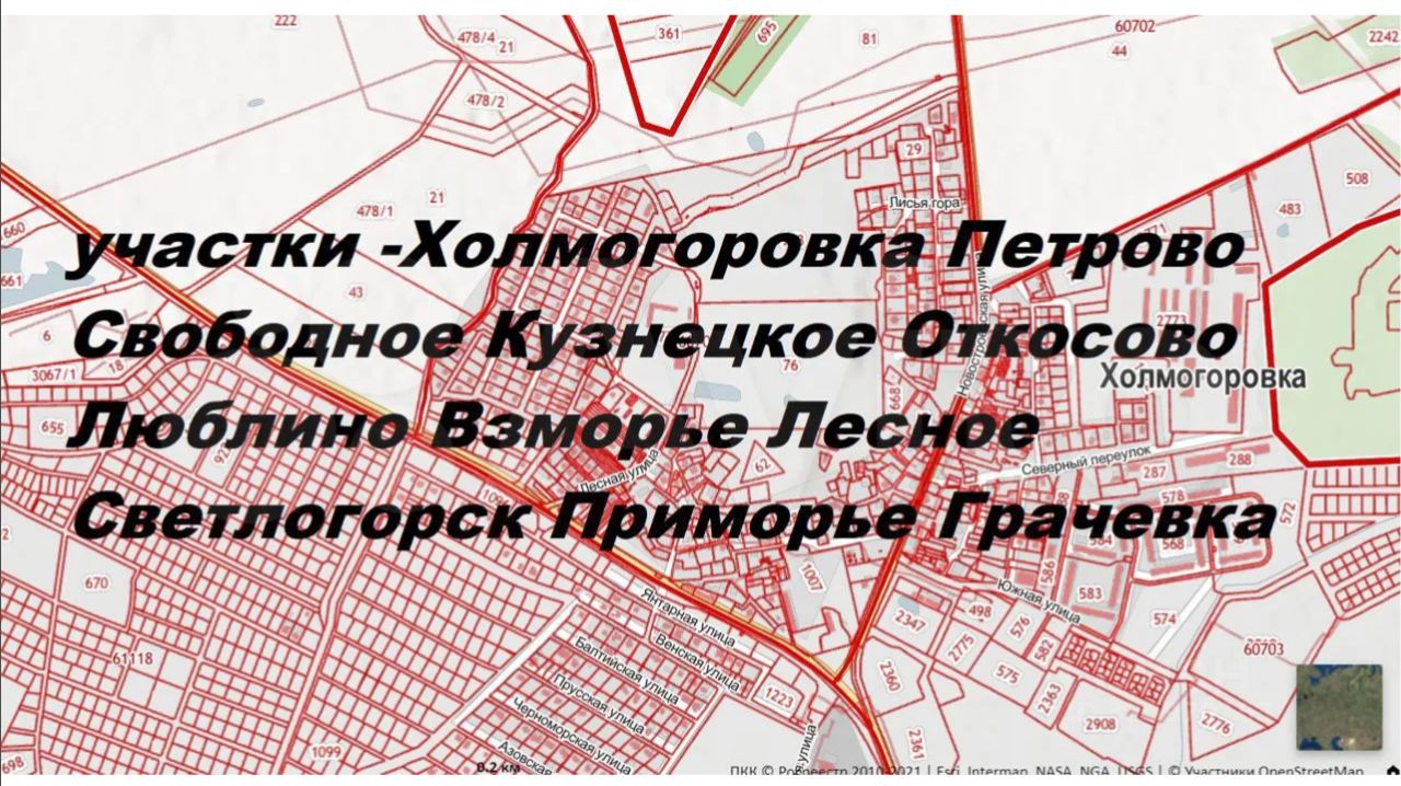 Холмогоровка от 1800тр, Петрово от 600тр, Кузнецкое от 600тр, Cвободное от 1300тр, Откосово от 300тр, Взоморье от 400тр Люблино от 300тр Лесное от 200тр Светлогорск от 800тр Приморье от 600тр Грачевка от 400тр, Клюквенное от 900тр (ИЖД, ЛПХ, СТО)