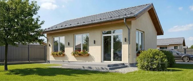 ДОМ 60м2 с эргономичной планировкой, двумя комнатами и кухней-гостиной с выходом на большую открытую террасу в 20м2 на земельном участке ИЖС 6 соток.