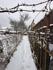 Электрический столб находится прямо на границе участка, что значительно упрощает и удешевляет подключение электричества.