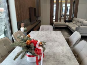 Планировка дома включает три спальни, просторную кухню-гостиную, бытовую комнату и два санузла. В отделке использованы качественные современные материалы. Инженерное оснащение обеспечивает полную автономность и комфорт: отопление дома осуществляется от энергосберегающего электрокотла + камин в гостиной, водоснабжение — из собственной скважины, водоотведение — через локальную очистную станцию. На участке проведен высокоскоростной интернет и телевидение, смонтирована система видеонаблюдения. Электроснабжение разрешенной мощностью 15 кВт достаточно для всех нужд.