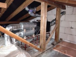 На чердаке установлена приточно-вытяжная система вентиляции (рекуператор). Система обеспечивает принудительный воздухообмен, подавая свежий и удаляя загрязненный воздух. Используются гибкие изолированные воздуховоды для минимизации потерь тепла и шума. Установка включает фильтры и шумоглушители для обеспечения комфортного микроклимата.