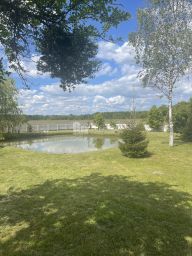 На территории много зеленых насаждений, есть сад (яблоки, вишня, черешня, слива, малина, смородина) и два озера с карпами и карасями.