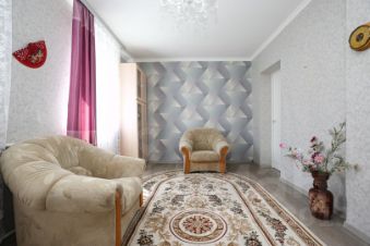 Общая площадь квартиры 52,1 м.кв. Высота потолков 2,8 м. Прихожая 6,8 м.кв. Небольшая кухня 7,2 м.кв. граничит с обеденной зоной, выделенной в смежной комнате 10,7 м.кв. Изолированные комнаты 15,3 и 8,5 м.кв.Санузел совмещенный 3,6 м.кв. Веранда 16 м.кв. Качественный современный ремонт в светлых тонах.
