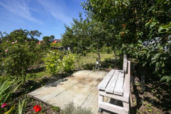 Придомовая территория по периметру квартиры и земельный участок за домом 6 соток в пользовании собственниками квартиры. Территория огорожена. Парковочное место. Плодовые деревья и кустарники, цветы, огород.