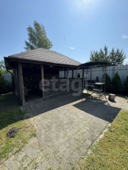 На стороне главного фасада дома расположен навес на несколько машин под одной крышей с домом.