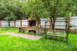 Наличие собственной территории ( участок 13 соток) с ухоженными зелеными насаждениями ( 2 сорта сладких яблок,ягоды, грецкий орех), дающими приятную прохладу летом и богатый урожай.