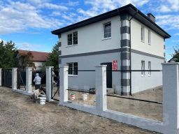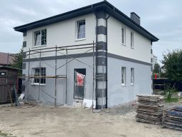 Чистый серый ключ (фасад здания утеплен и затянут караедом, полностью накрыта крыша металом черепицей, пяти камерные окна, входная дверь, полностью разведена проводка и водоснабжение).