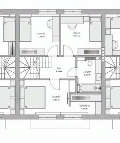 На 2 этаже - 3 спальни, ванная комната.