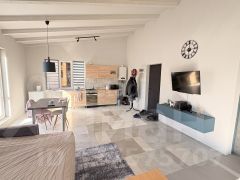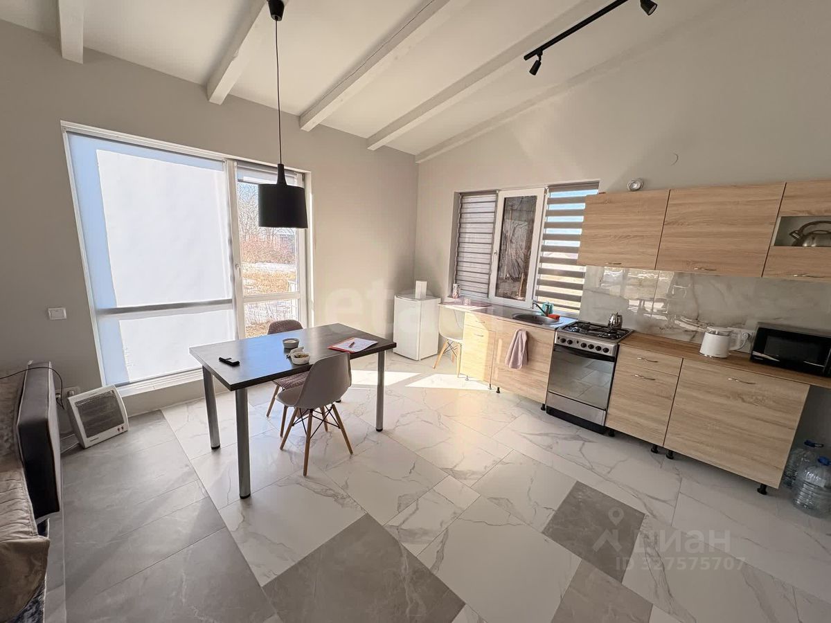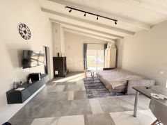 Дом (42,4 кв.м): Жилое пространство с кирпичным камином. По периметру проложен теплый пол.