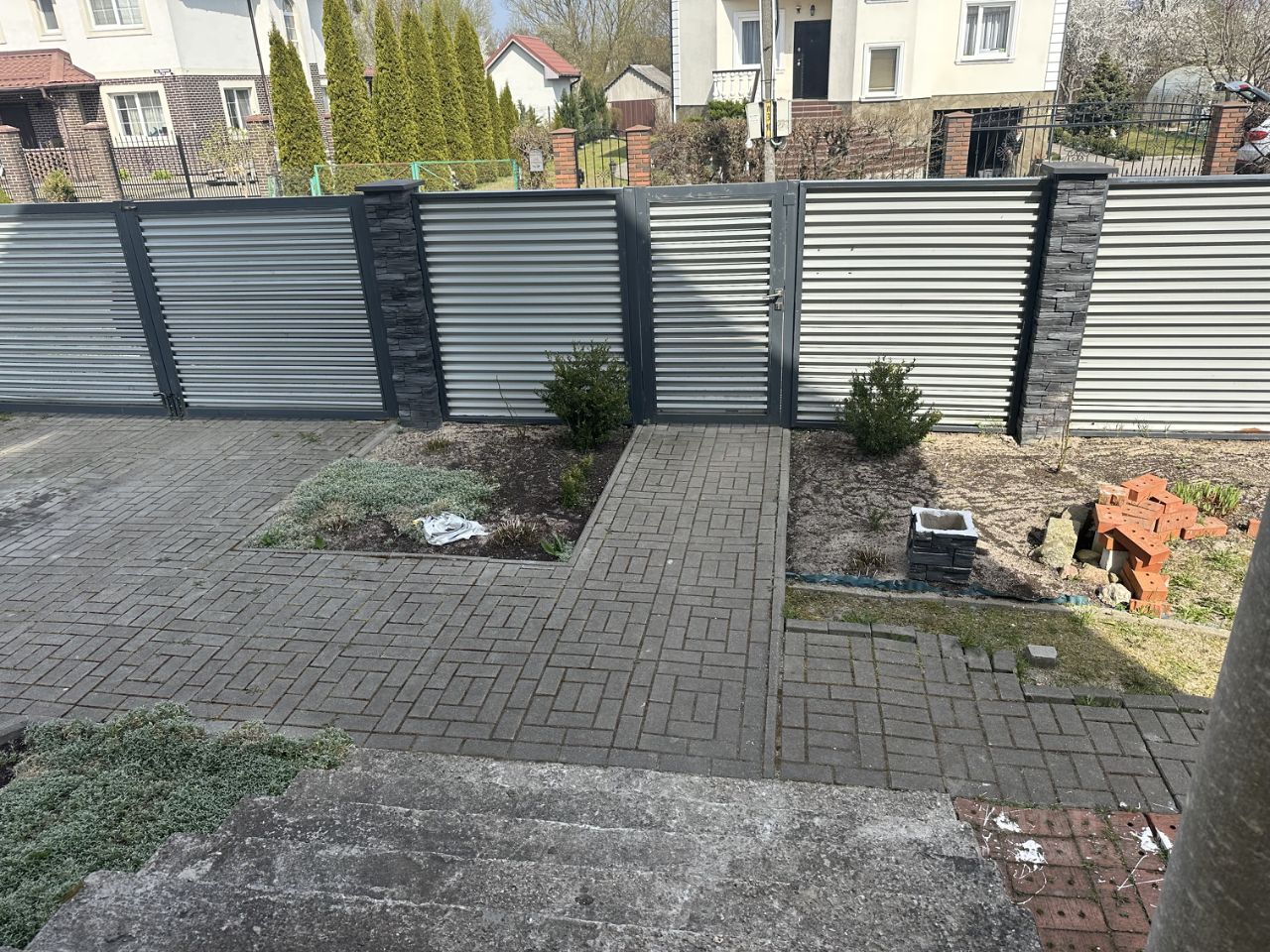 Заезд и проход к дому выложен тротуарной плиткой, забор-жалюзи.