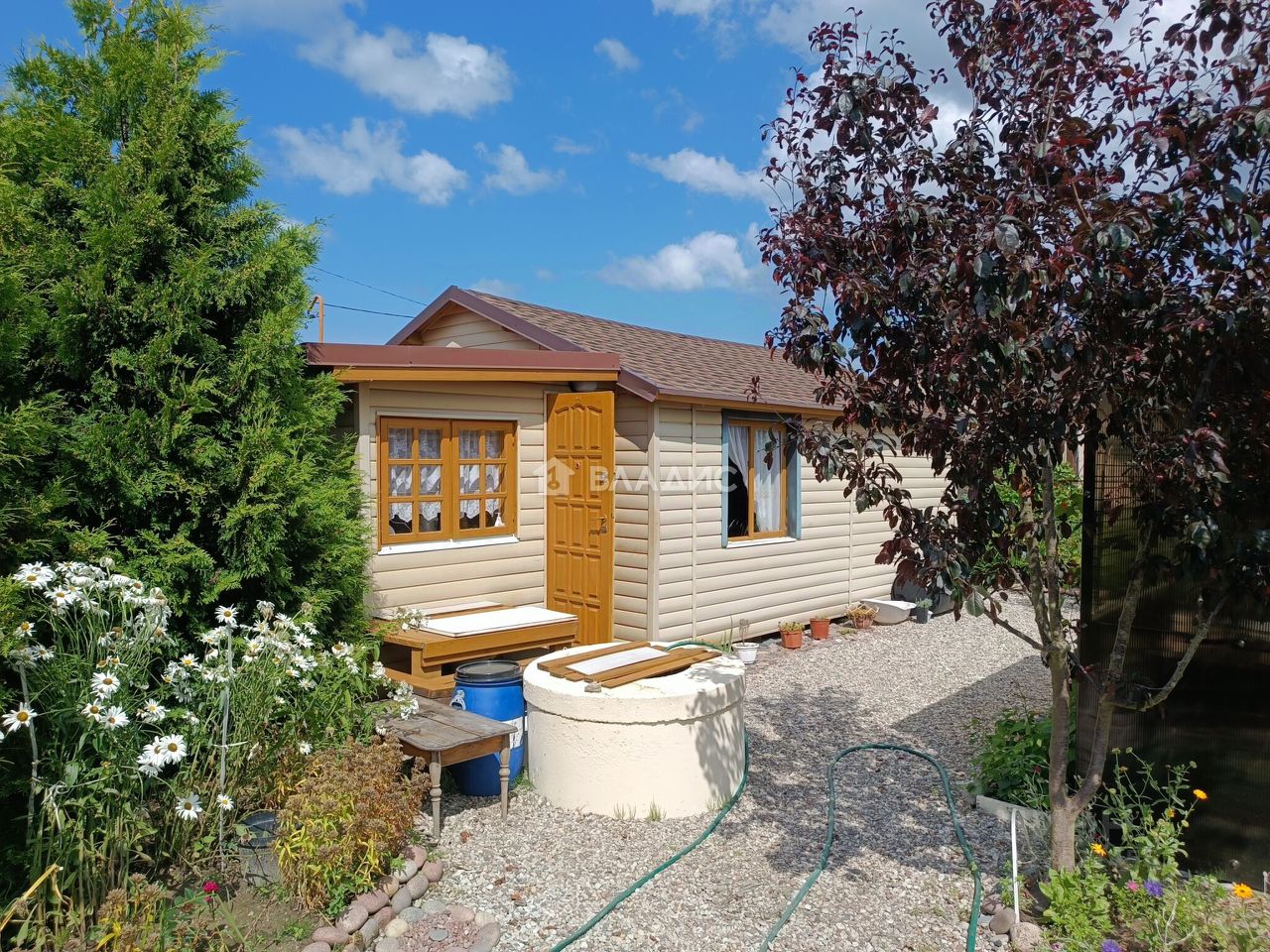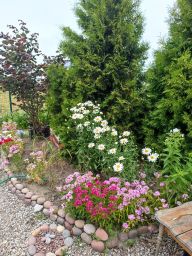 - все ухожено. На участке растут туи по периметру дома, множество цветов: розы, пионы, ромашки, гвоздики...