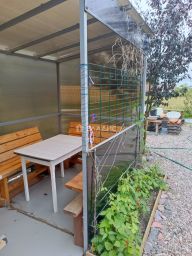 - перед домом беседка - летняя кухня, качель