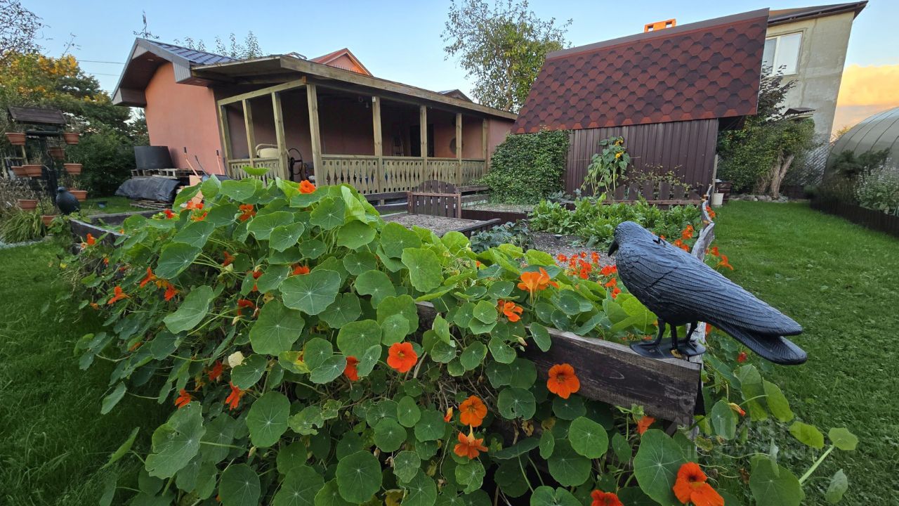 На участке много плодовых деревьев и кустарников.