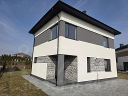 Дом построен из газосиликатных блоков. Фасад утеплен пенополистиролом, покрыт силиконовой штукатуркой с элементами из декоративного камня. Стильные ламинированные окна и двери с немецким профилем. Оригинальные алюминиевые оконные отливы добавляют облику дома элегантность и оригинальность.