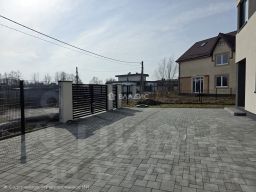 Отмостка вокруг дома, заезд, парковочные места выложены тротуарной плиткой.