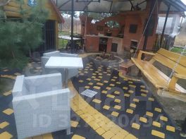 - видео наблюдение; Двор вымощен плиткой, на участке высажены декоративные и фруктовые деревья, кустарники, виноград.
