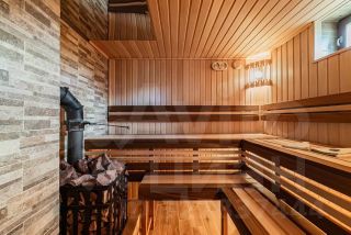 - сауна на дровах 5,5 кв.м. использовались экологические материалы: липа и канадский термоабаш, пол керамогранит, печь Гефест