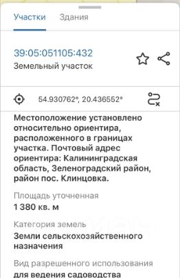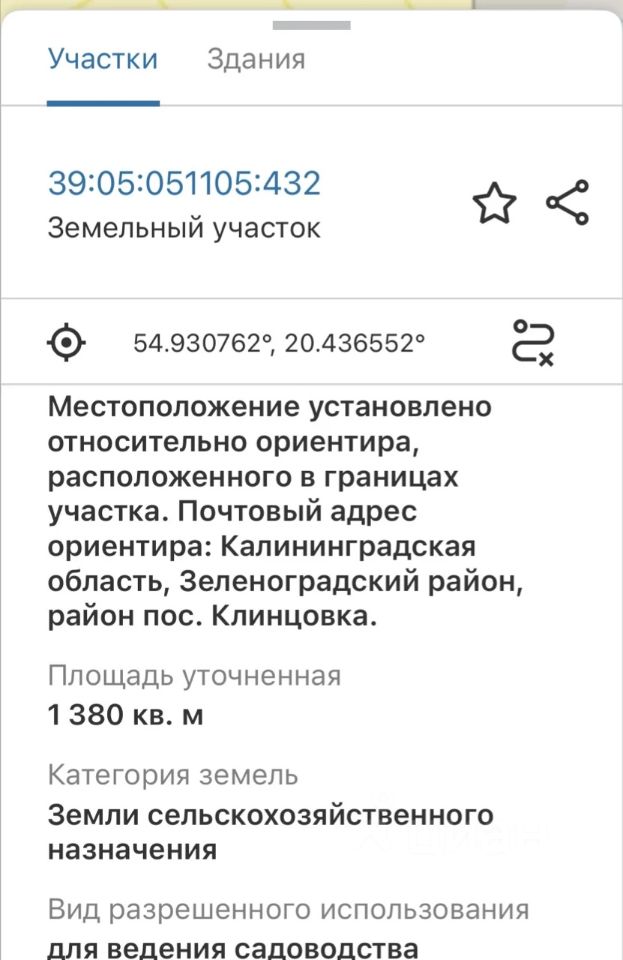 Кадастровый номер участка - 39:05:051105:432.