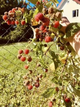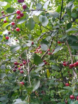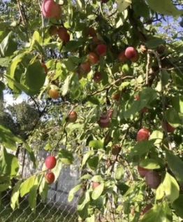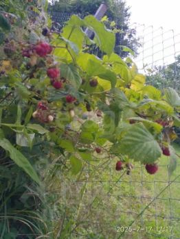 На участке высажены плодовые деревья (яблоня, слива, грецкий орех), малина.