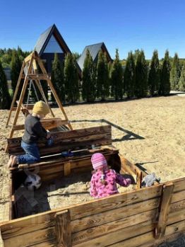 Два дома по 42 кв.м метра на участке 10 соток. На территории комплекса расположена баня, джакузи с подогревом, детская площадка, имеется прокат велосипедов