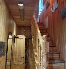 Здание бани полностью жилое, 2 этажа, на 1-ом этаже санузел, котельная, кухня, печь-камин, парилка, душевая, бассейн. На 2-ом этаже санузел с джакузи, спальня, большой балкон. Чердак для сушки веников. Также красивая веранда и закрытый дровяник. Отопление газовое, горячая и холодная вода, подогрев полов, высокоскоростной интернет- wi-fi. Аварийное отопление-инфракрасные обогреватели. Большая парилка, в отделке использованы качественные породы древесины. Печь-каменка, мощная. Парилка быстро нагревается и долго держит тепло.