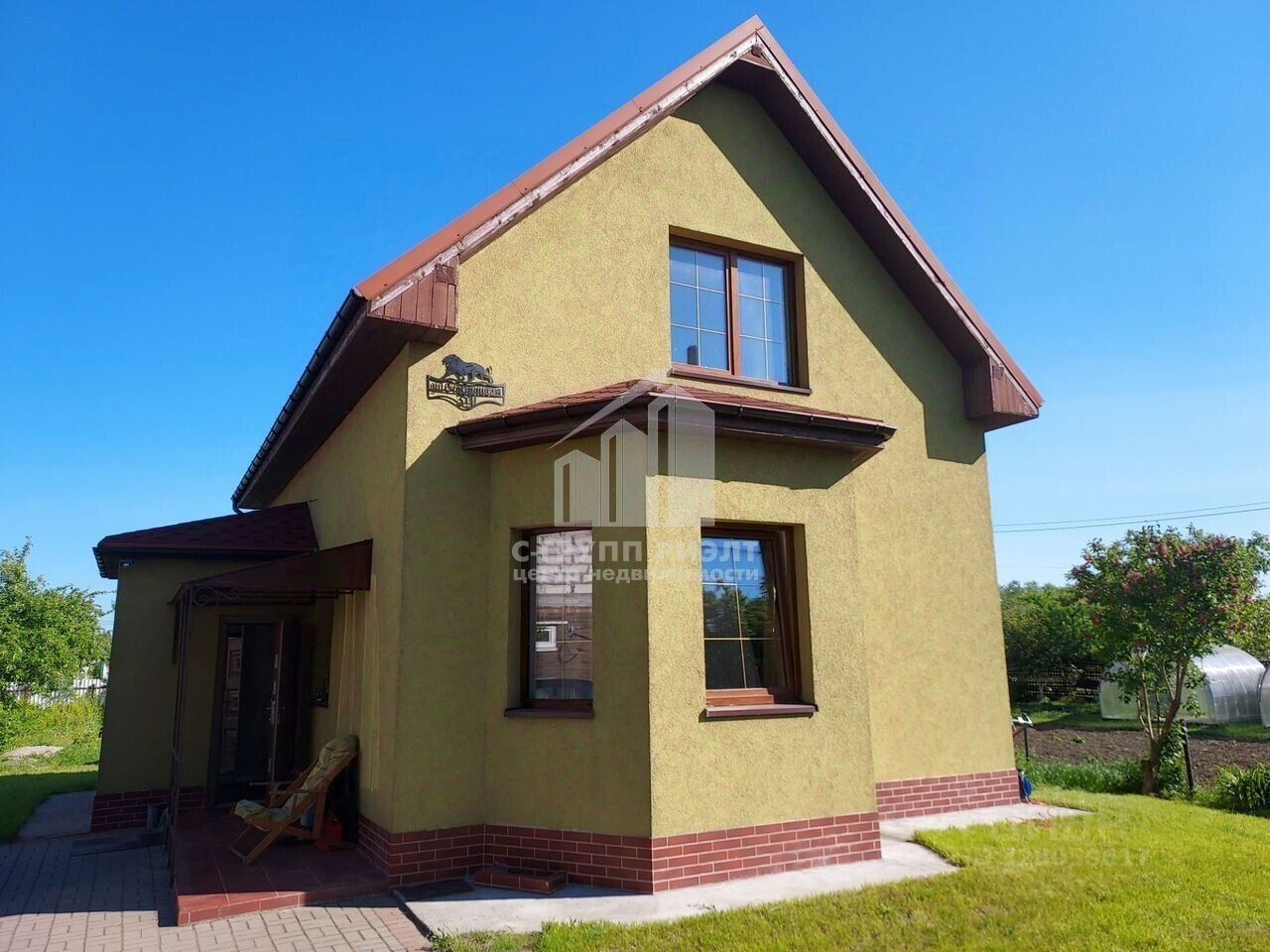 На участке площадью 7,2 соток высажены плодовые деревья и кустарники. Оборудована теплица, место для хранения дров в зоне для барбекю. Остаётся весь необходимый садовый инвентарь.