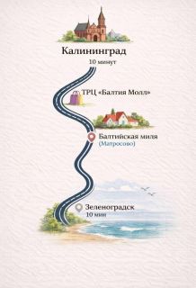 15 мин до моря по трассе до Зеленоградска на берегу моря