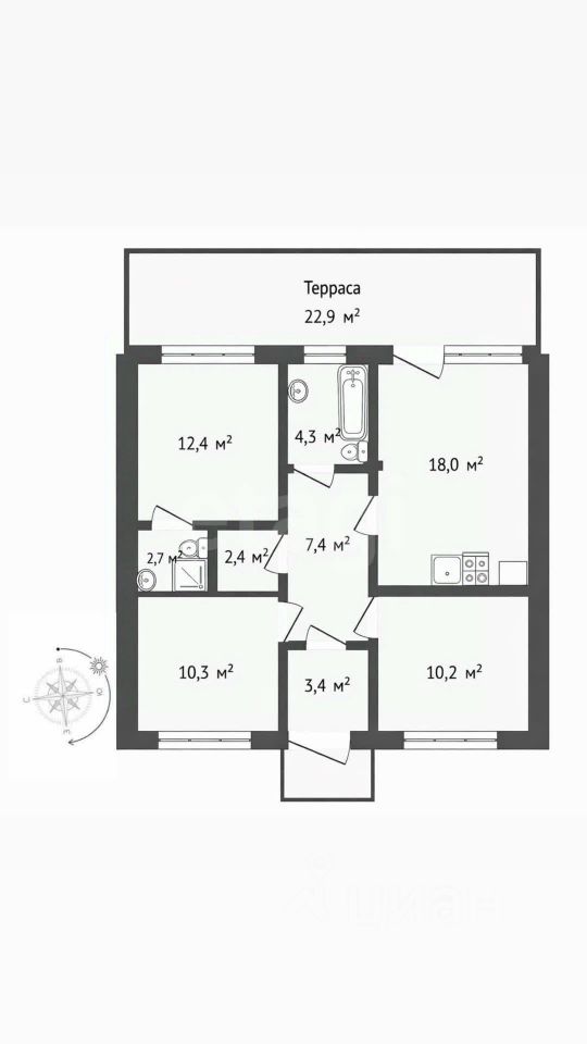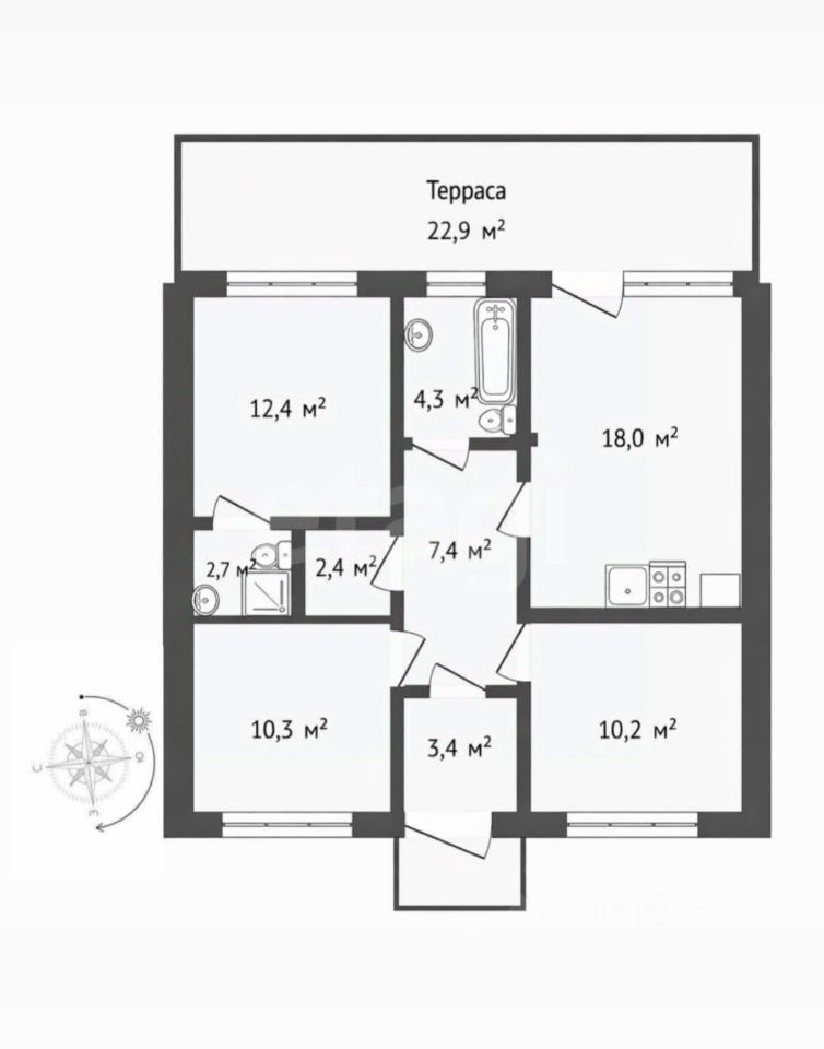 • 3 отдельные спальни