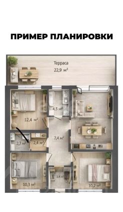 • терраса почти 23 м² - ощущение дома больше 120 м²