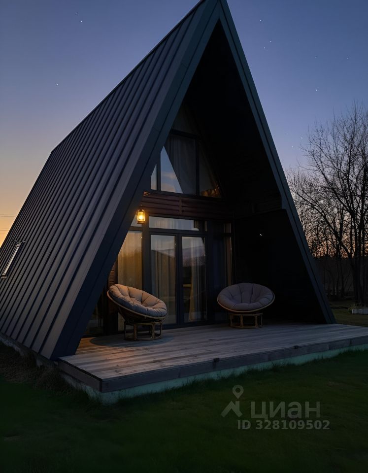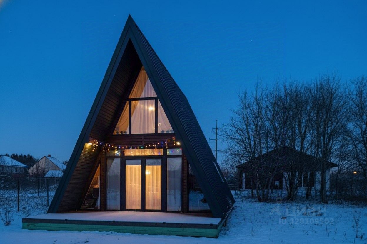Дом А-фрейм с полезной площадью 46 м2 (общая 54 м2) и открытой террасой 18 м2.