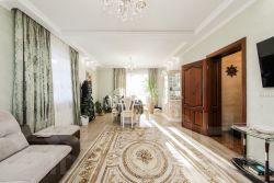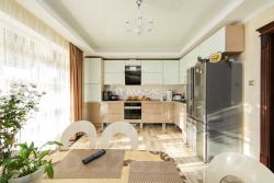 Отделка. В доме сделан РЕМОНТ С ИСПОЛЬЗОВАНИЕМ КАЧЕСТВЕННЫХ МАТЕРИАЛОВ. Встроенная кухня с техникой, оборудована системами доводчиков и оснащена современной бытовой техникой. Холодильник, посудомоечная машина, микроволновая печь, духовой шкаф, варочная поверхность, телевизор. Для отделки использовали качественные экологичные материалы. На полу керамогранит (с подогревом от двухконтурного газового котла по всему первому этажу). Лестница из натурального дерева.