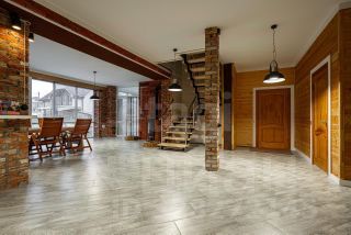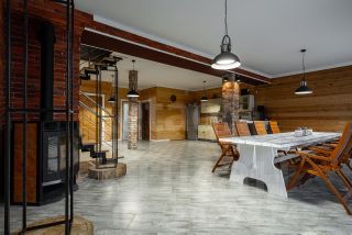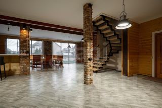 Дом построен из керамического блока с отделкой под дерево, кровля из натуральной черепицы. На первом этаже расположены кухня-гостиная, подсобные помещения, оранжерея, гостевые санузлы и просторная терраса. Второй этаж занимают шесть изолированных спален и большая гостиная. Высота потолков — 3 метра, во всех помещениях теплые полы и керамогранит.