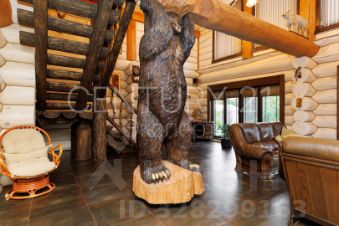 - Трёхметровый медведь — центральная колонна, вырезанная из одного бревна. Никто другой в Калининградской области не имеет такого.